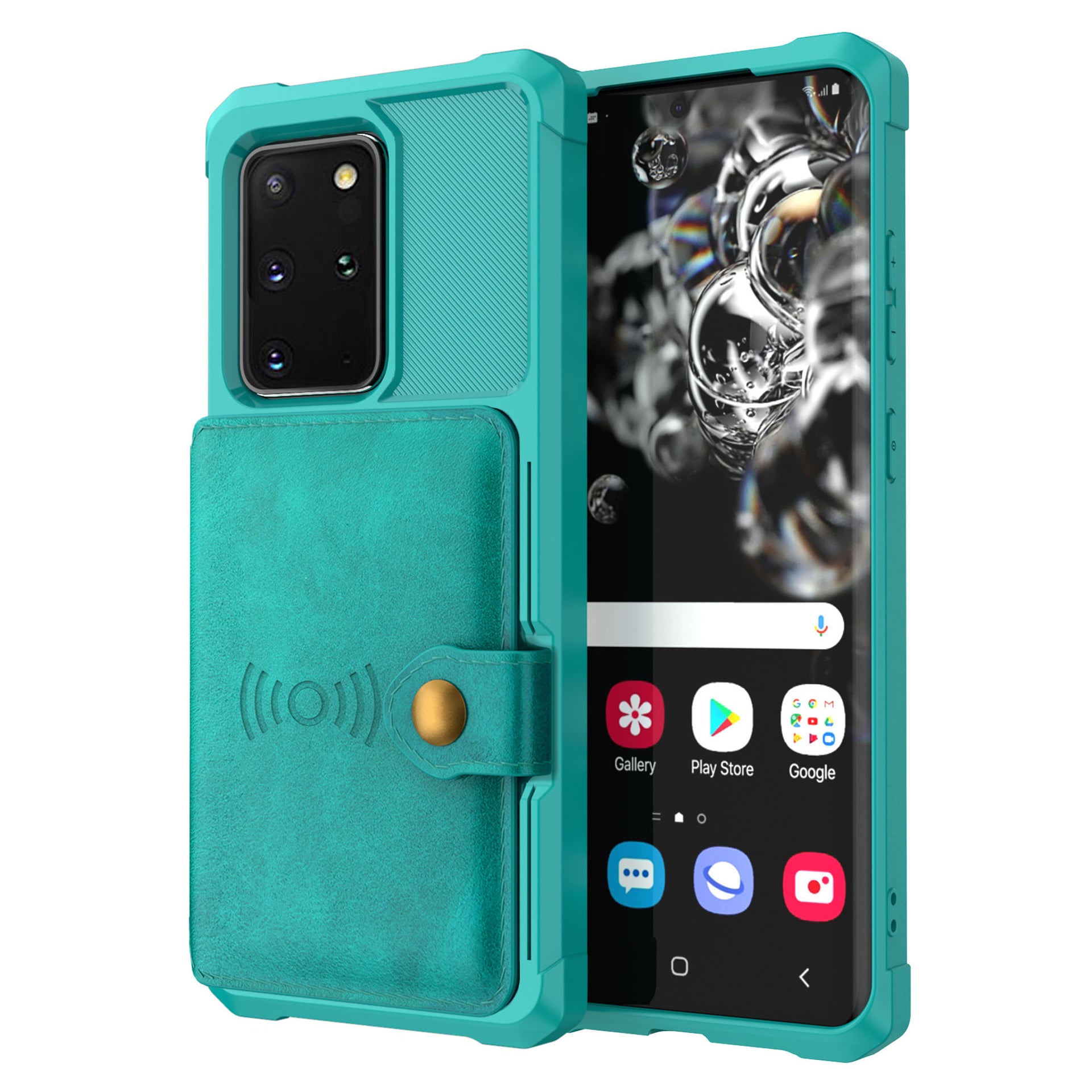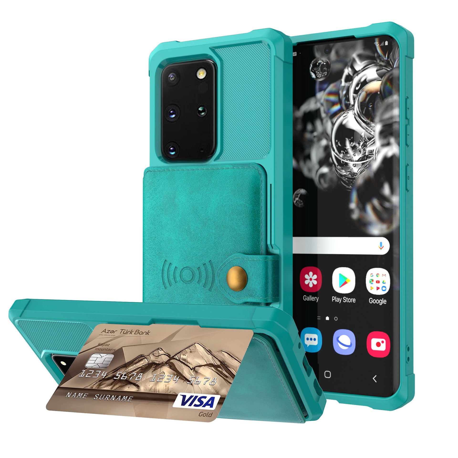 Wallet Kickstand Leather Coated TPU Cover Built-in Magnetic Sheet for Samsung Galaxy S20 Plus/S20 Plus 5G - Cyan