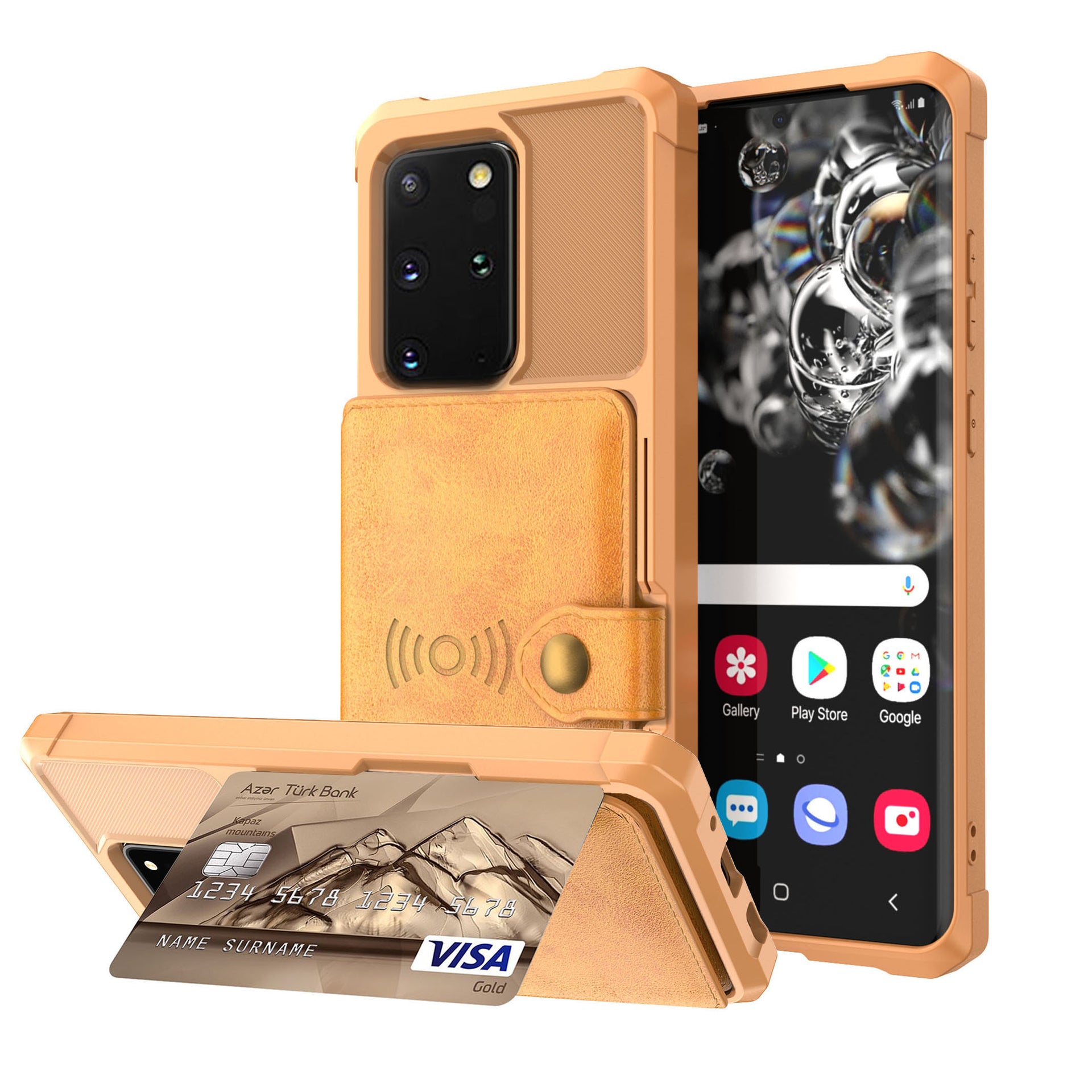 Wallet Kickstand Leather Coated TPU Cover Built-in Magnetic Sheet for Samsung Galaxy S20 Plus/S20 Plus 5G - Gold