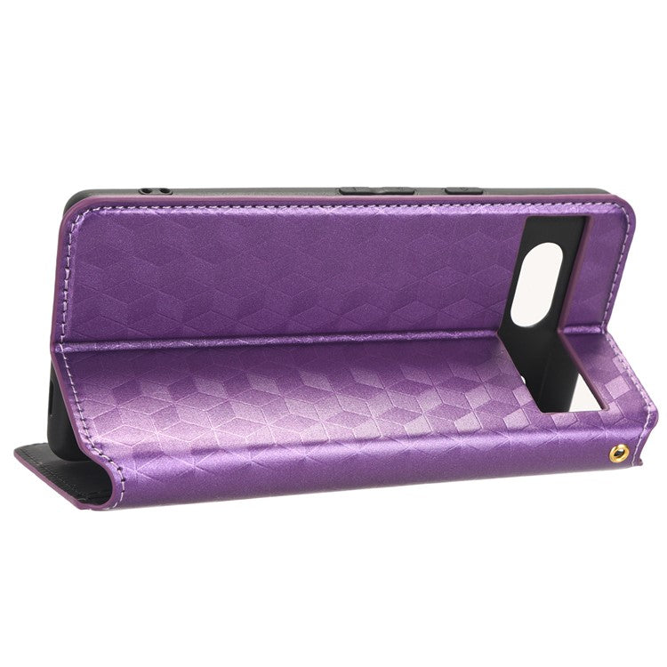 Wallet Phone Case for Google Pixel 7a , PU Leather Imprinted Rhombus Pattern Flip Folio Stand Phone Cover - Purple