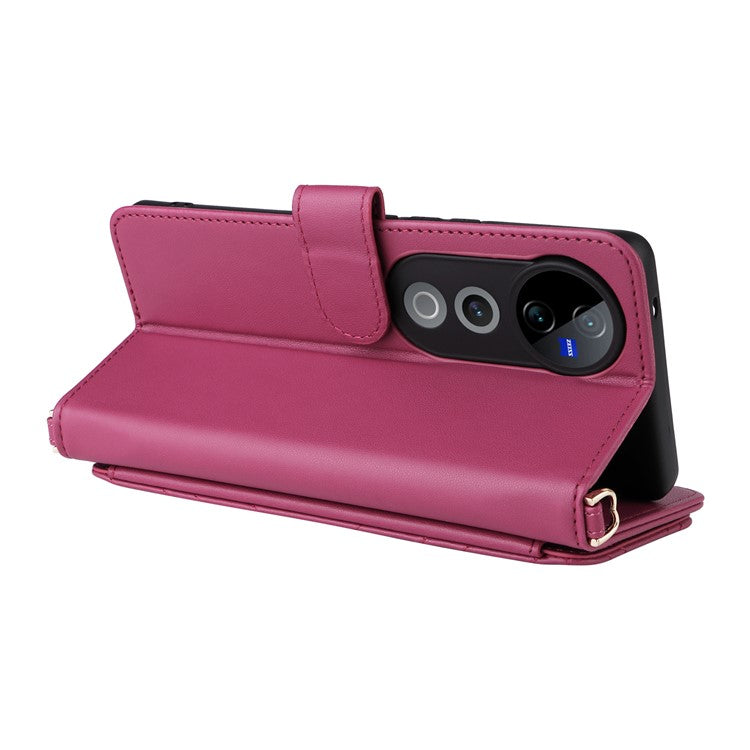 Wallet Phone Case for vivo T3 Ultra 5G / V40 Pro 5G / V40 5G / S19 Pro 5G Leather Cover with Shoulder Strap - Rose