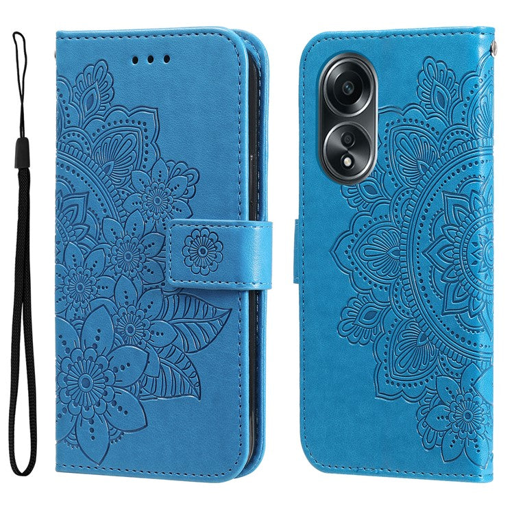 Wallet Stand Cover for Oppo A58 4G , Anti-Scratch Flower Imprint PU Leather Wallet Phone Case - Blue