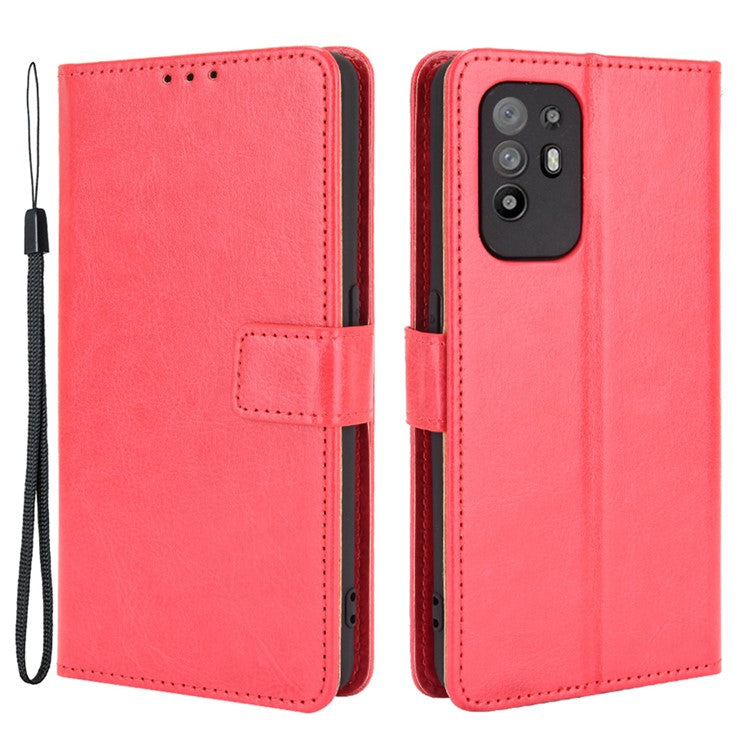 Wallet Stand Design Crazy Horse Skin Leather Shell with Strap for Oppo A94 5G/Reno5 Z/F19 Pro+ 5G - Red