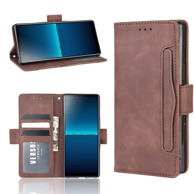 Wallet Stand Flip Leather Phone Case with Multiple Card Slots for Sony Xperia L4 - Brown