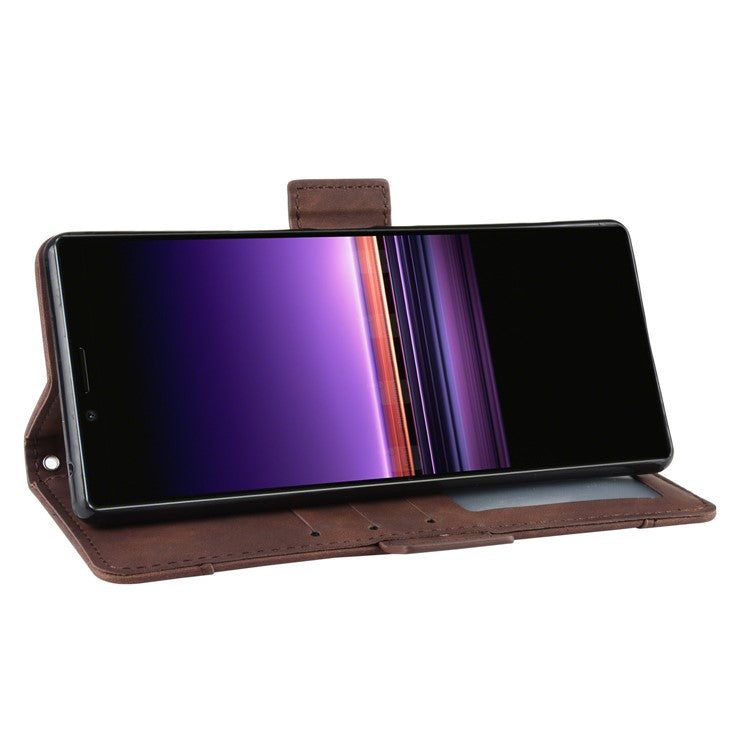 Wallet Stand Leather Protective Phone Case for Sony Xperia 1 - Coffee