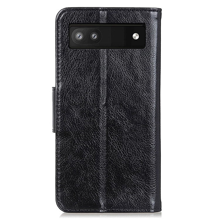 Wallet Stand Phone Case for Google Pixel 7a , Split Leather Nappa Texture Anti-Dust Phone Cover - Black