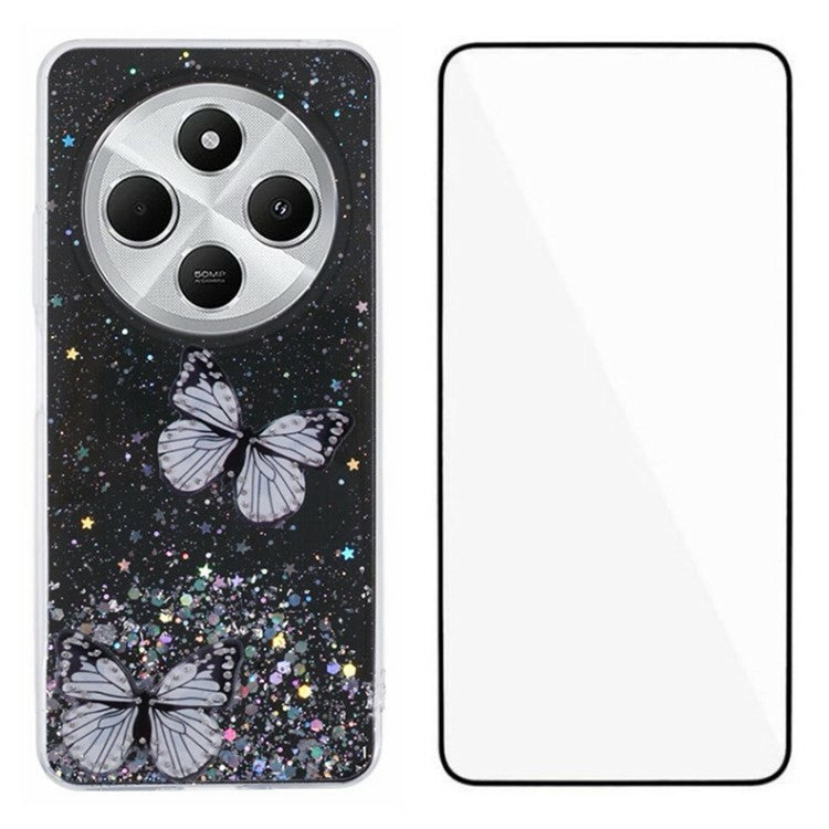 WANLONFENG AW Series TPU Case for Xiaomi Poco C75 4G / Redmi 14R 5G / 14C 4G PVC Butterfly Epoxy with Screen Film - Black