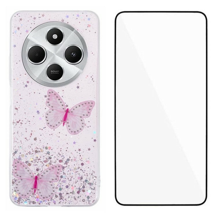 WANLONFENG AW Series TPU Case for Xiaomi Poco C75 4G / Redmi 14R 5G / 14C 4G PVC Butterfly Epoxy with Screen Film - Pink