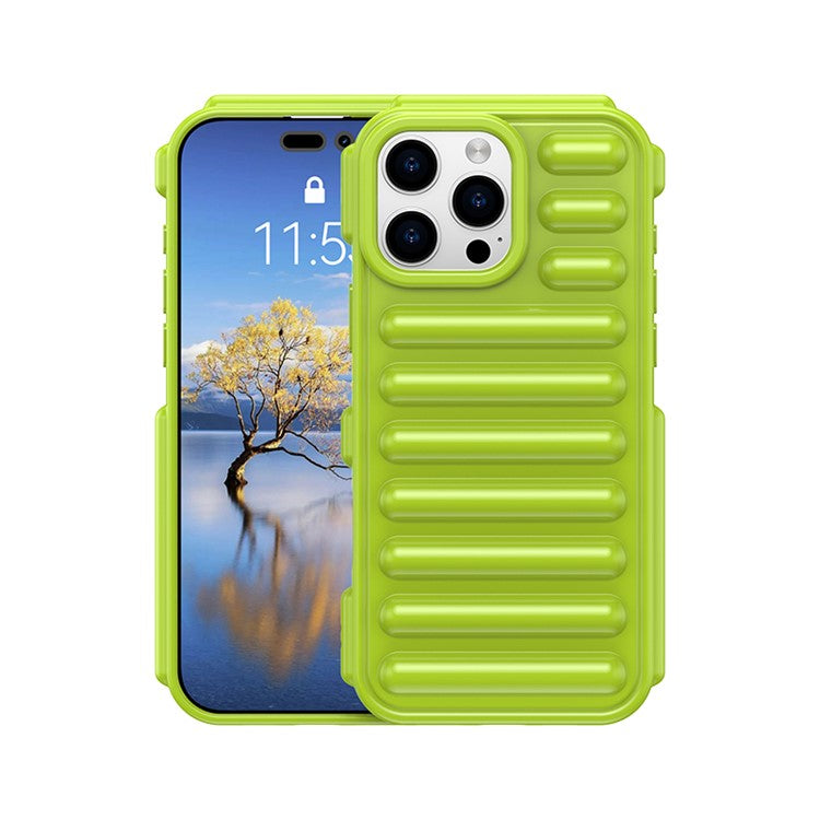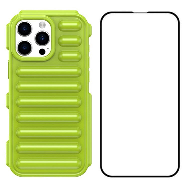 WANLONFENG LK Series for iPhone 16 Pro Case Ribbed TPU Soft Phone Cover with Screen Film - Green