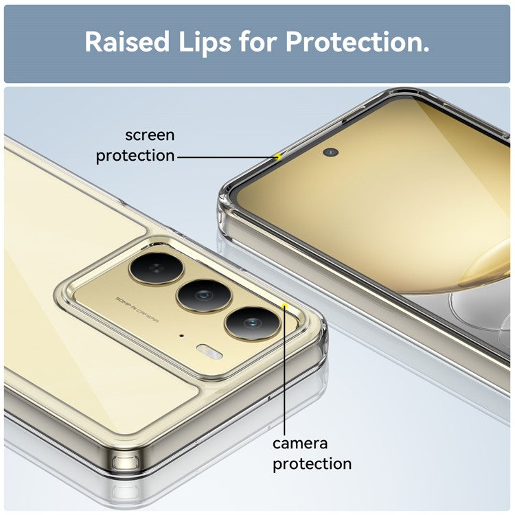 WANLONFENG MF Series for Realme 14x 5G Case TPU Acrylic Clear Phone Cover with Tempered Glass Film