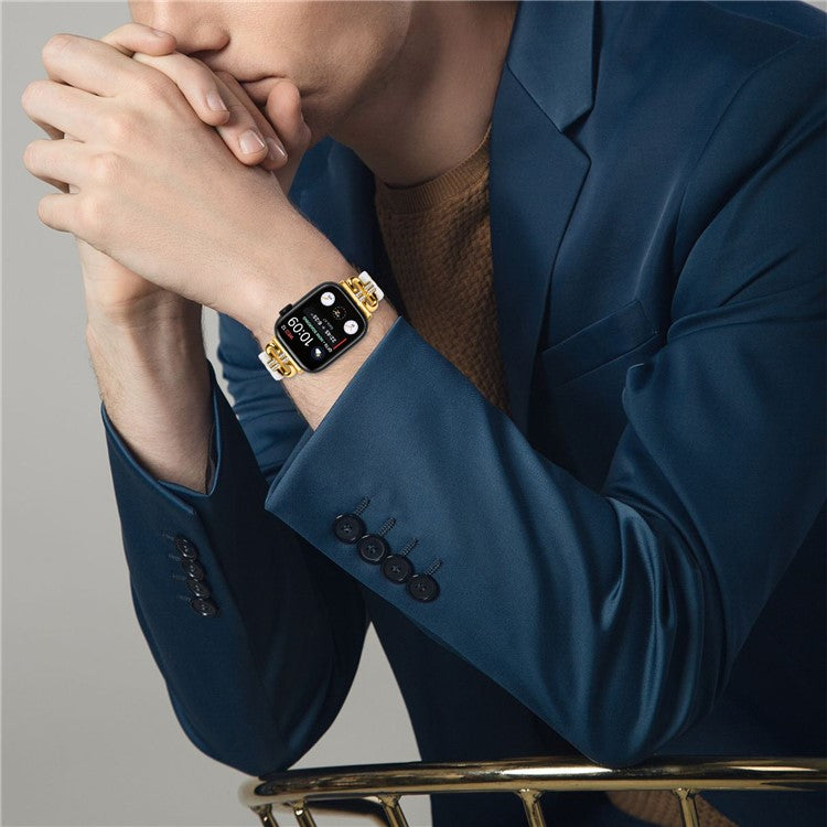 Watch Band for Apple Watch Series 10 42mm / 9 8 7 41mm / SE (2023) SE (2022) SE 6 5 4 40mm / 3 2 1 38mm Resin Wrist Strap - Gold+White