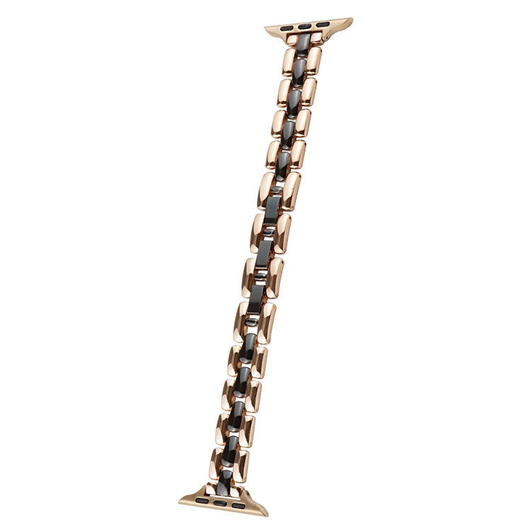 Watch Band for Apple Watch Series 10 42mm / 9 8 7 41mm / SE (2023) SE (2022) SE 6 5 4 40mm / 3 2 1 38mm Slim 3-Bead Watch Band - Rose Gold+Black