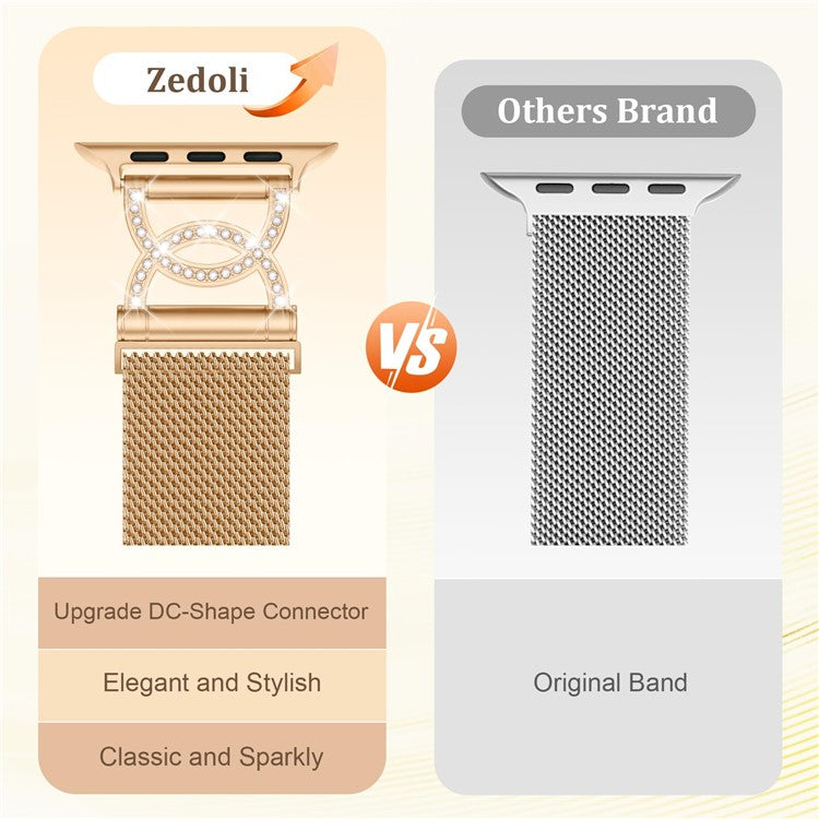 Watch Band For Apple Watch Series 10 9 8 7 SE 6 5 4 3 2 1 42mm 41mm 40mm 38mm DC-Shape Rhinestones Magnetic Clasp Stainless Steel Strap - Rose Gold