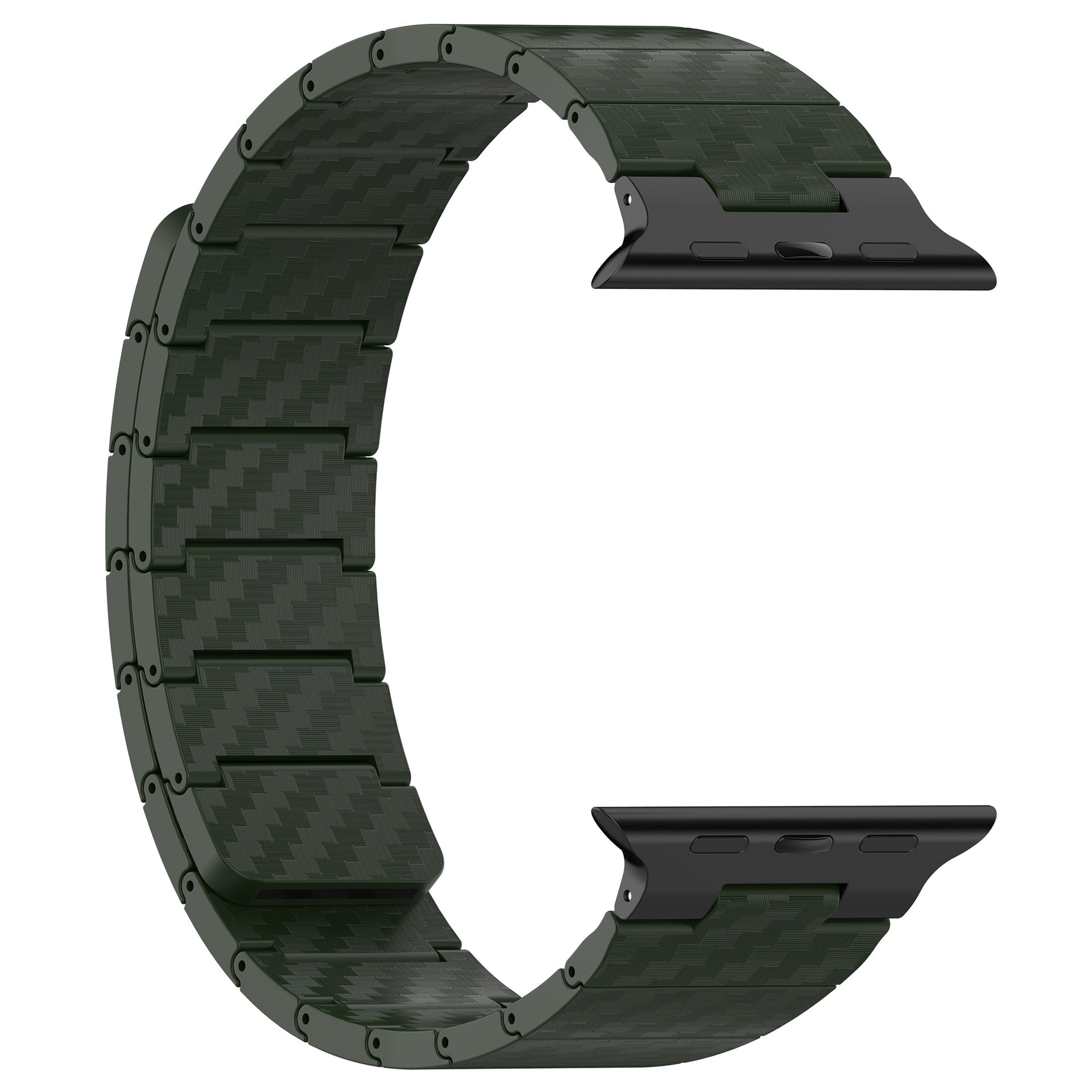 Watch Band for Apple Watch Series 8 7 41mm / Series 6 5 4 SE (2022) SE 40mm / Series 3 2 1 38mm , AW Carbon Fiber Texture Hard PC Magnetic Strap - Green