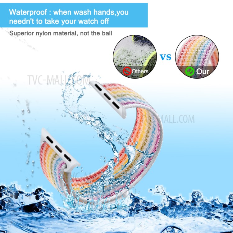 Waterproof Nylon Weaven Loop Fastener Smart Bracelet Strap for Apple Watch Series 10 46mm / Ultra 2 Ultra 49mm / 9 8 7 45mm / SE (2023) SE (2022) SE 6 5 4 44mm / 3 2 1 42mm - Color Stripe