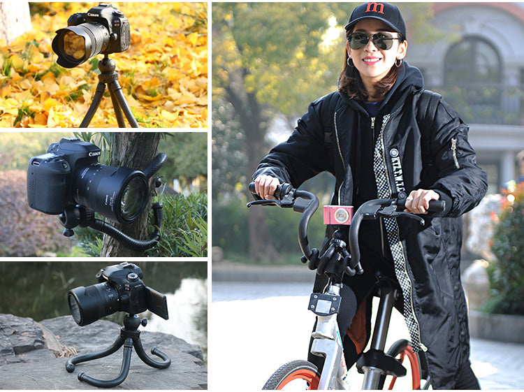 Flexible legs: with strong flexible legs, you can adjust it to any shape you want, allowing you to wrap around fence, tree branch or bicycle, which is ideal for travelling and capturing different views
