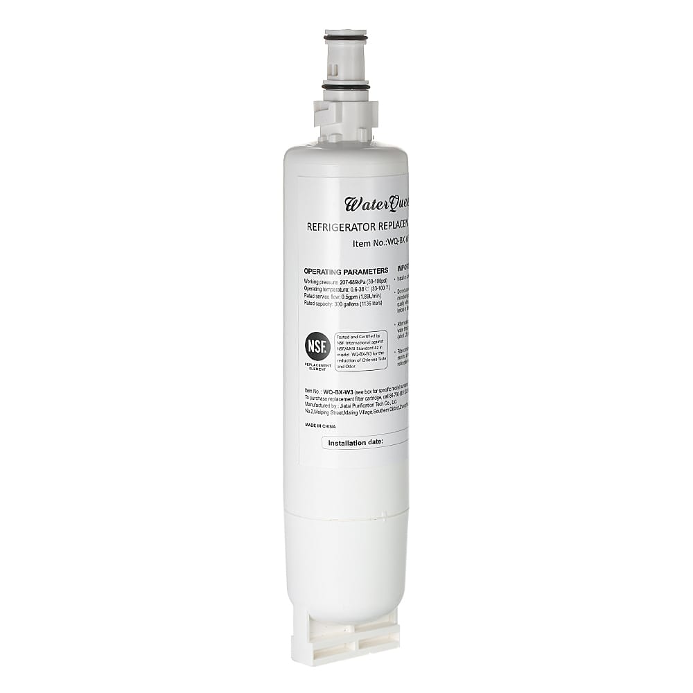Features:NSF42 Certified: tested and certified by NSF International against NSF/ANSI 42 for material safety structural integrity and reduction of chlorine taste and odor.Advanced Coconut Carbon Block Technology Offers Premium Filtration: reduces chlorine bad taste and odor rust floating sediments carbofuran endrin tetrachloroethylene trichlorobenzene carbon tetrachloride and many other contaminants.Beneficial Minerals are Maintained: the refrigerator water filter does not remove beneficial minerals such as calcium magnesium and potassium from water.Long Working Life: 300 gallons of water or 6 months.Easy Installation: easy to install and fits in corresponding refrigerator well.Compatible with: WHIRLPOOL 4396508 Filter 5 4396508P 4396508T 4396509 4396509P 4396510 4396510P 4396510T 4396547 4396548 4396562 4396563 4396918 4392857 4392857R 4392922 4396163 4396164 46 9902 46 9908 9902 NL240 WSW-1; KITCHENAID 4396547 4396548 4396163 4396164 22203221 2255709 4396509 4396509P PUR W10186668 BRITA WPRF100 AFF5-L400 L400V L500 LC400 LC400V. (Note: This is not an OEM product. All trademarks remain the property of their respective owners and are used for compatibility information only. WaterQueen is not related to these brands.)Specifications:Material: PC+activated carbonItem Size: Approx. 52 * 255mm / 2.05 * 10.04in (D*H)Item Weight: Approx. 242g / 8.55ozPackage Weight: Approx. 268g / 9.48ozPackage Size: Approx. 26.5 * 5.3 * 5.3cm / 10.43 * 2.09 * 2.09inPackage List:1 * Filter Element