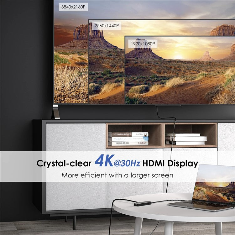- Interface: 1xType-C, 1x4K@30Hz HD, 1x100W PD IN, 3x5Gbps USB3.0-A, 1x1000Mbps RJ45