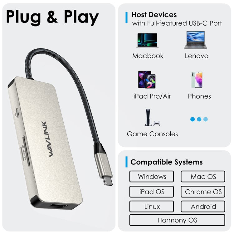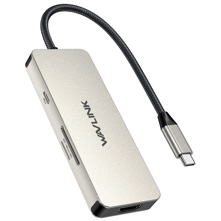 WAVLINK UHP3416 7-in-1 USB-C to 4K HD 100W PD Charging SD / TF Card Reader Docking Station - Silver