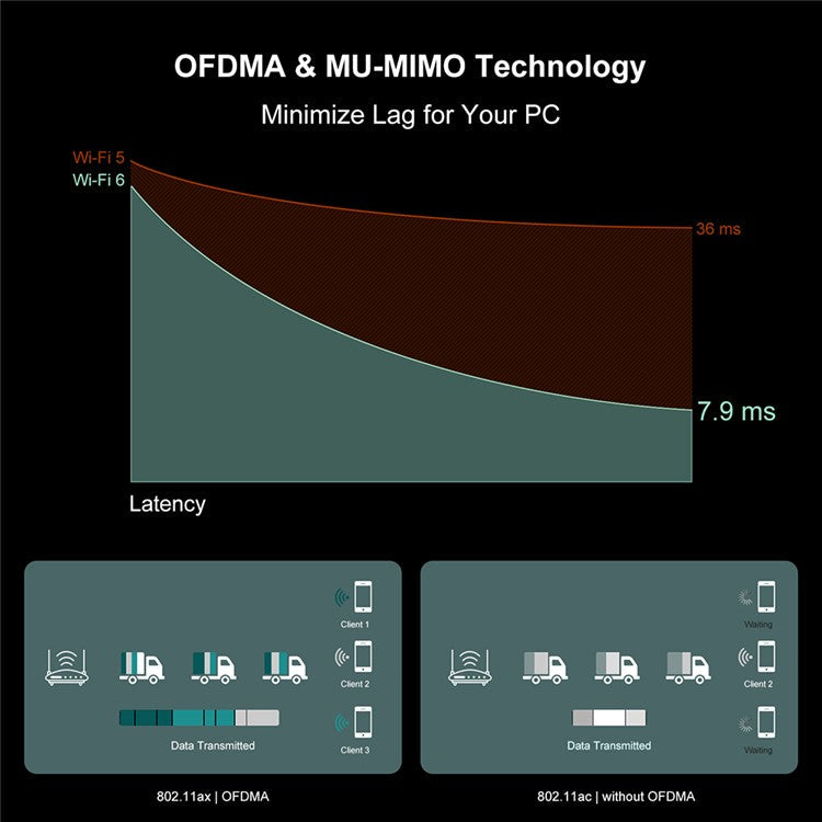 - OFDMA ultra fast speed: The combination of MU-MIMO architecture and OFDMA technology ensures better stability and high-speed performance for your computer even in congested networks with multiple devices.