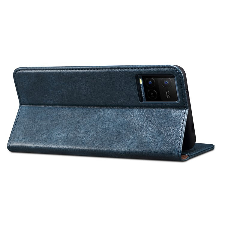 Waxy Crazy Horse Texture Wallet Stand Design Magnetic Auto-absorbed Protective PU Leather Phone Case Cover for vivo Y21 - Blue