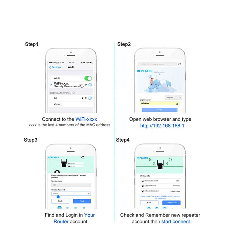 - Easy Setup: Our WiFi repeater is simple and easy to use, with just five steps, you can follow the instructions to set it up
