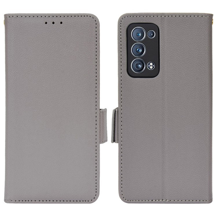 Well-protected Double Magnetic Clasp Litchi Texture PU Leather Stand Wallet Case Shell for Oppo Reno6 Pro+ 5G/Reno6 Pro 5G (Snapdragon) - Grey
