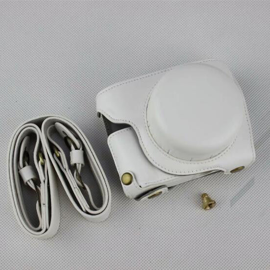 White - Detachable Base PU Leather Camera Protective Cover + Strap for Panasonic GF10