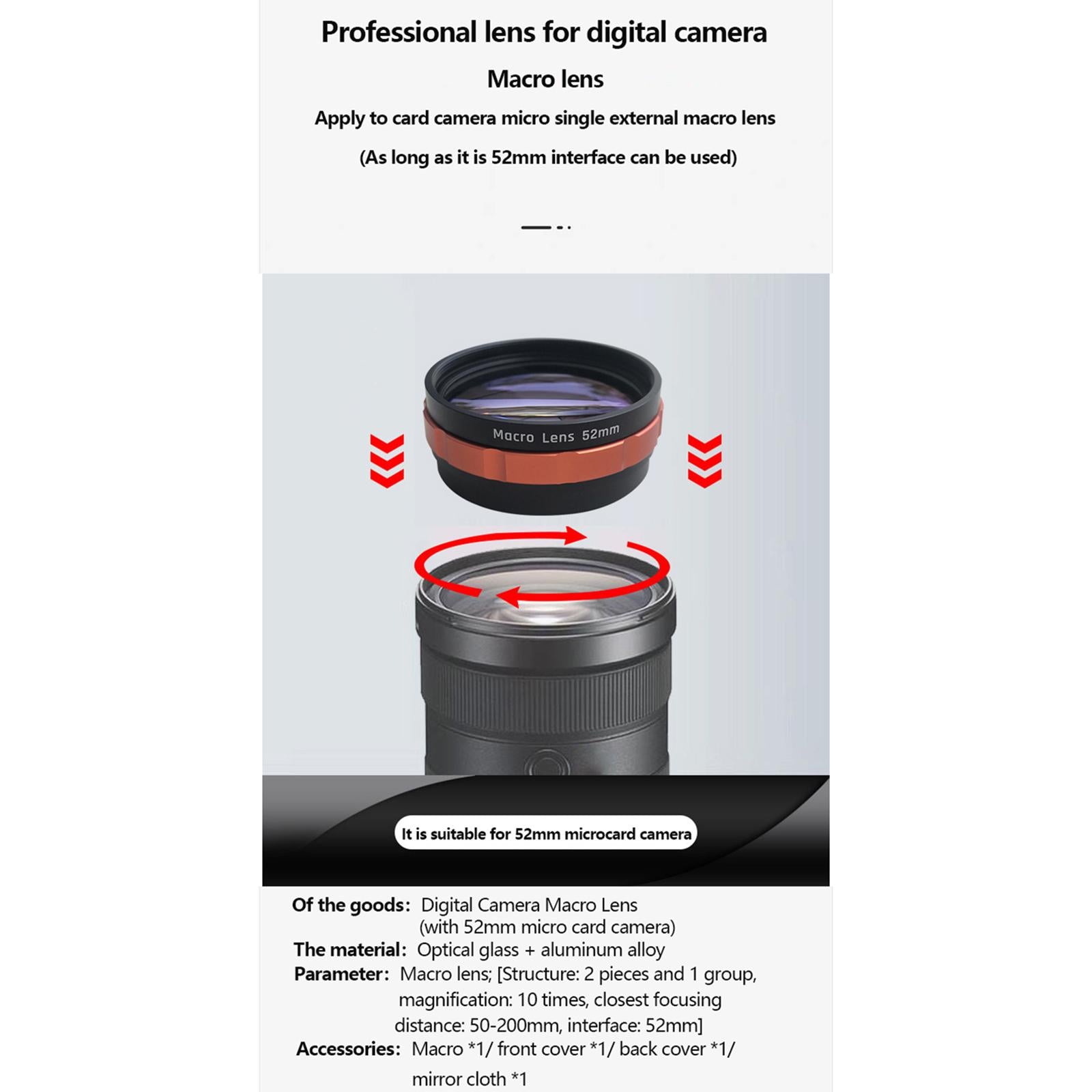 Professional lens for digital camera Macro lens, apply to card camera micro single external macro lens (As long as it is 52mm interface can be used)