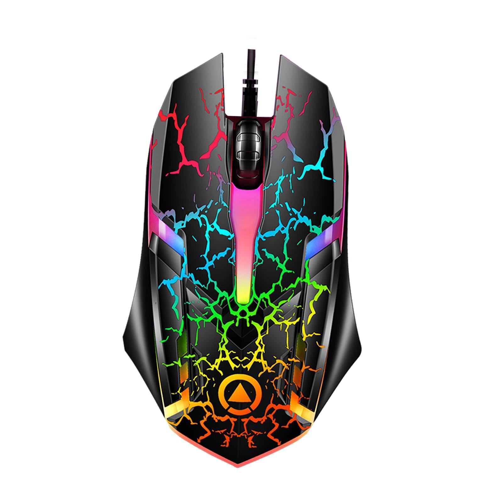 Wired Gaming Mouse Optical Sensor 7 Colors Lights for Laptop Crack Pattern