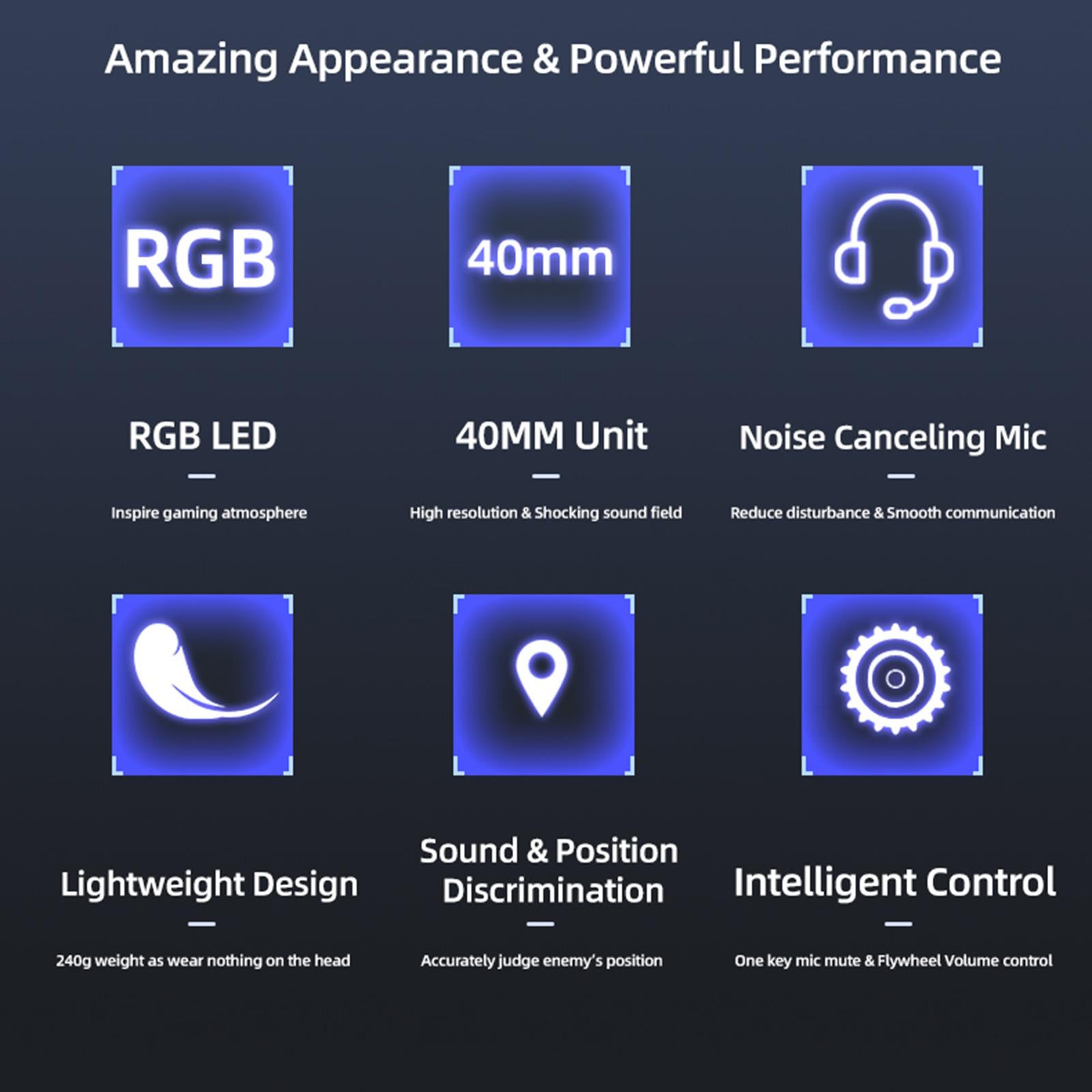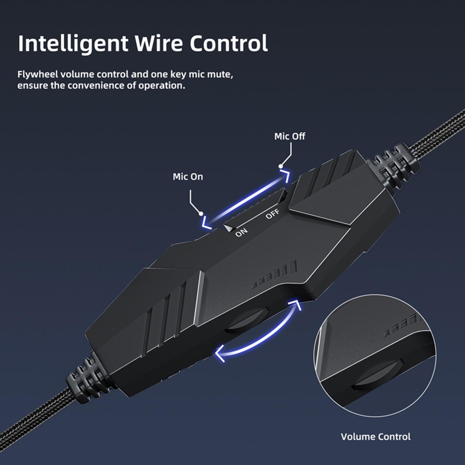 Wired Headset 3.5mm Surround Sound Adjustable for Game Teaching Black Blue