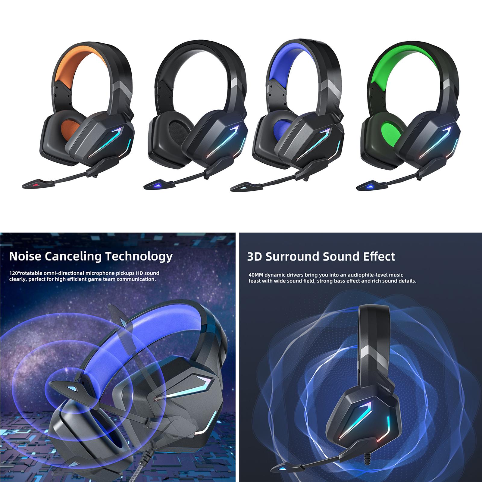Wired Headset 3.5mm Surround Sound Adjustable for Game Teaching Black Orange