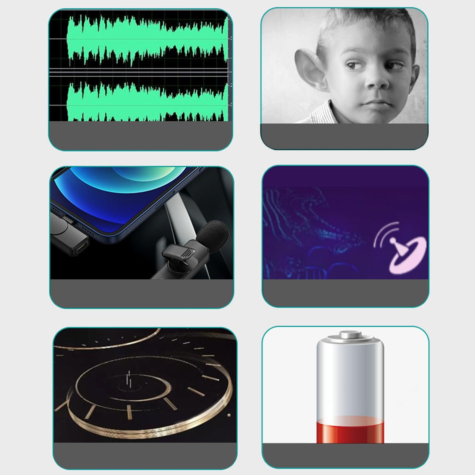 Lavalier microphone, can be clipped horizontally and vertically, stable and reliable. 360 full pointing pick up, record every detail of the sound.