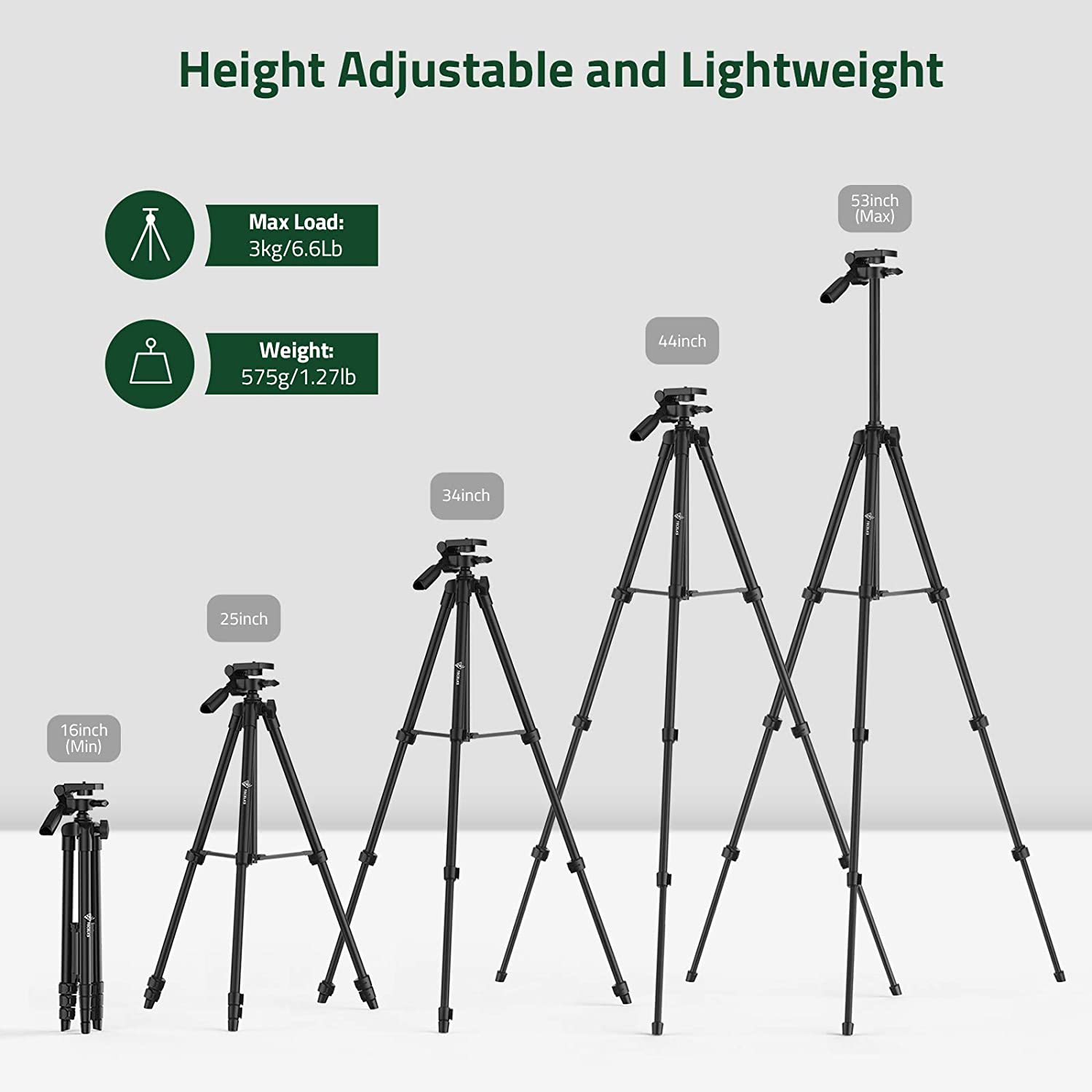 3 way pan head provides 360° rotation, which allows you to adjust to the ideal shooting angle
