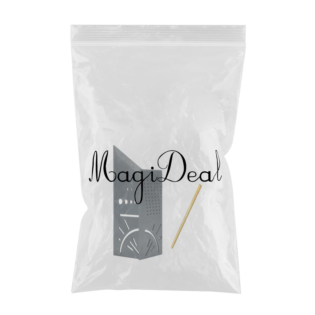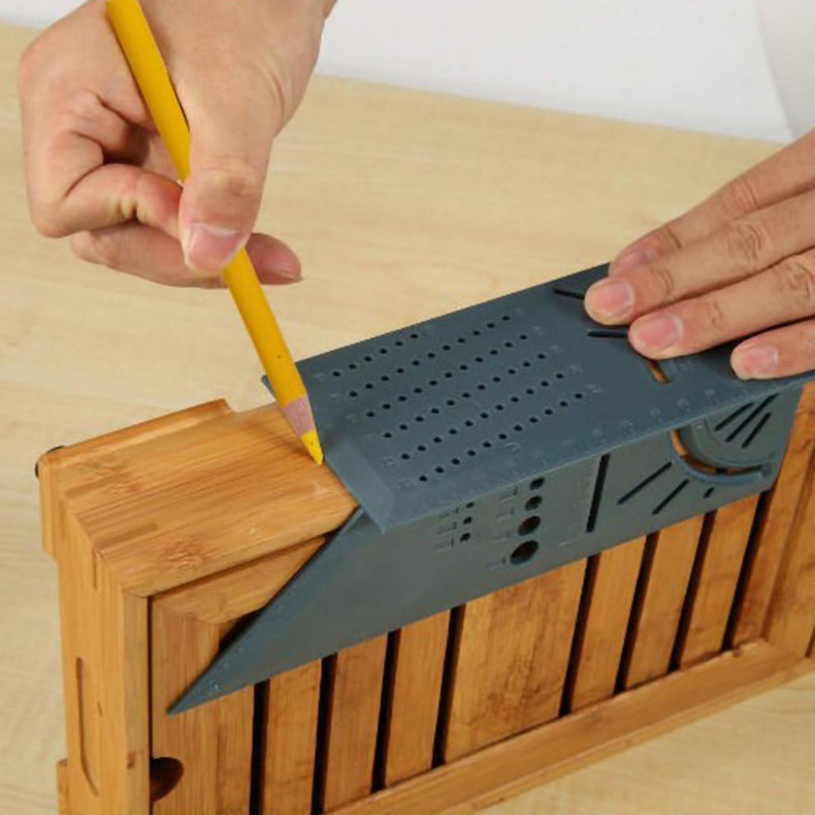 The 3D mitre angle measuring ruler can be used as marking gauge for parallel lines, and 3D corner ruler is a drill guide for determining the drill bit diameter, and can be used as limit stops for 45 and 90 degree angles.