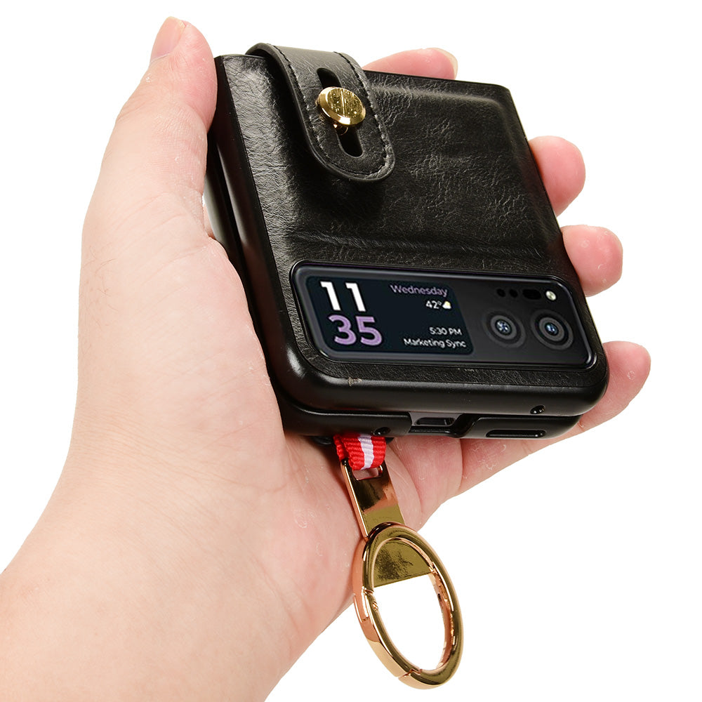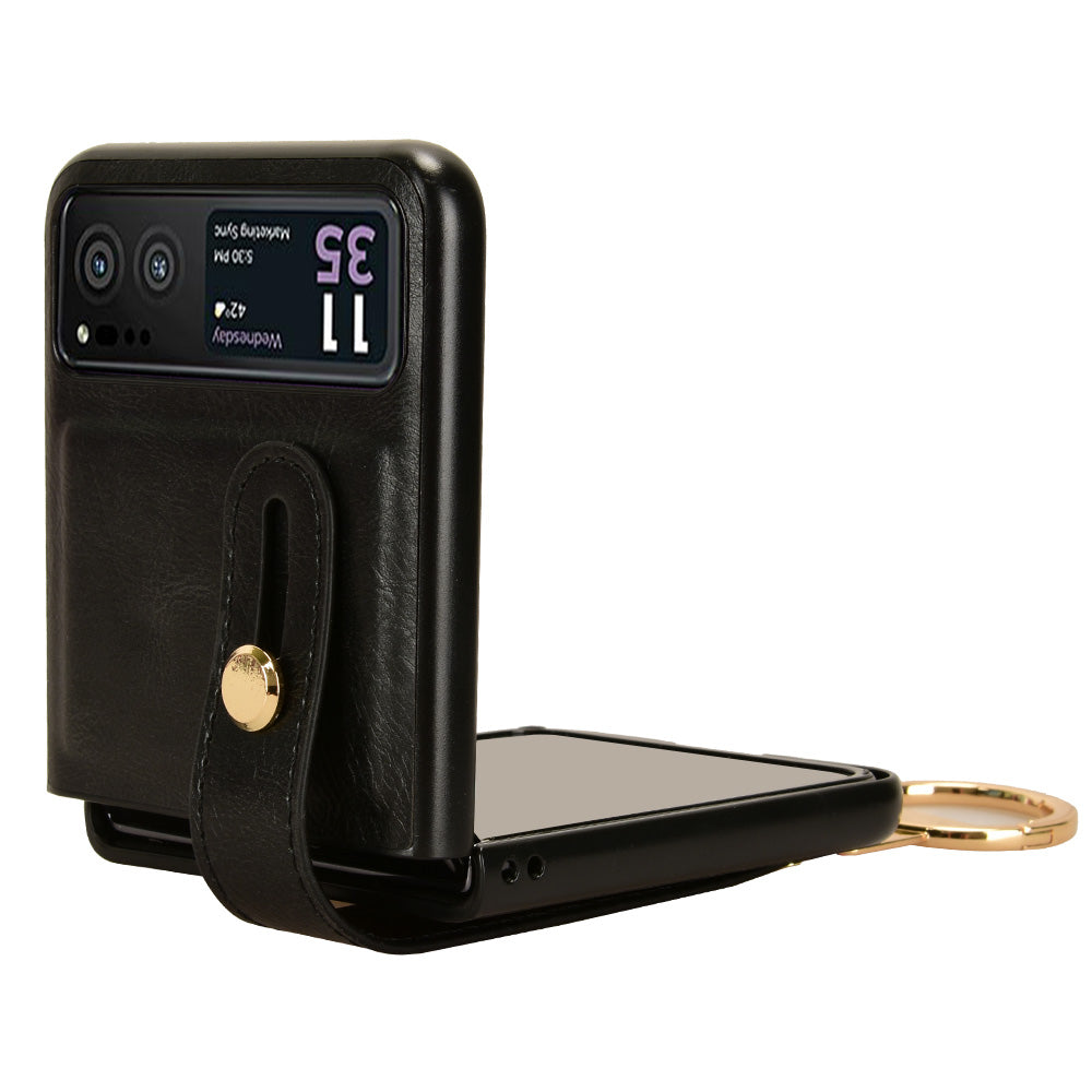 Wristband Phone Cover for Motorola Razr 40 5G , Leather Coating PC+TPU Back Case with Neck Strap - Black