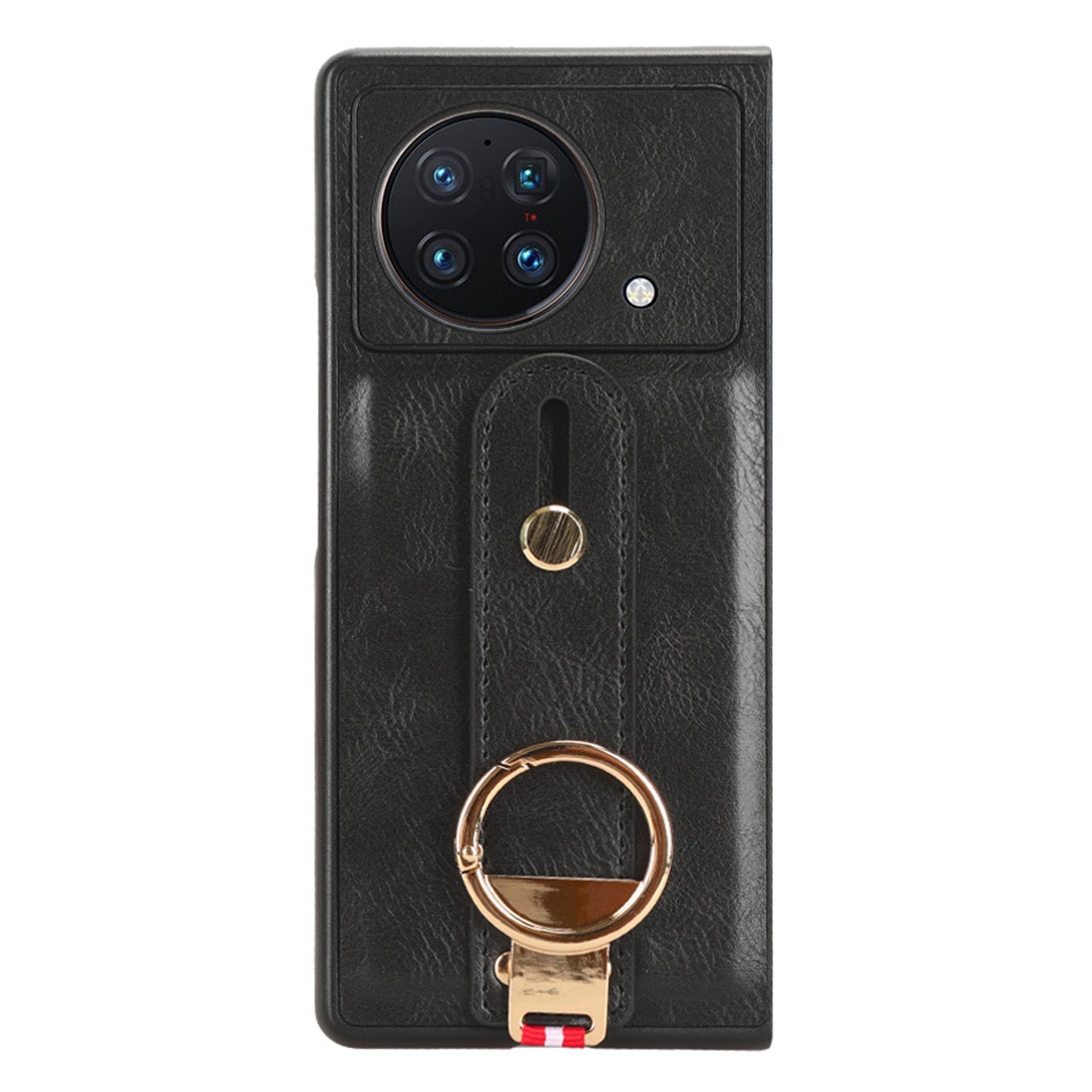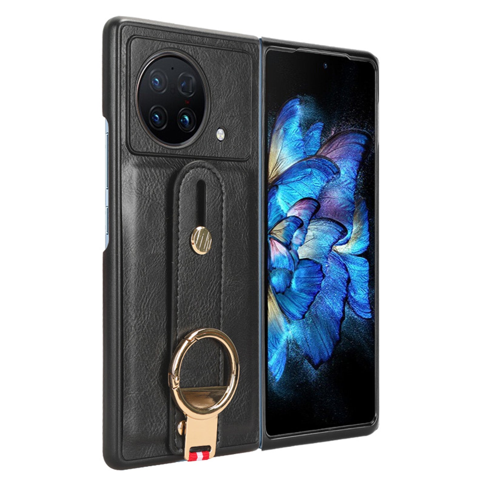 Wristband Phone Cover for vivo X Fold , Leather Coating PC+TPU Case with Neck Strap - Black