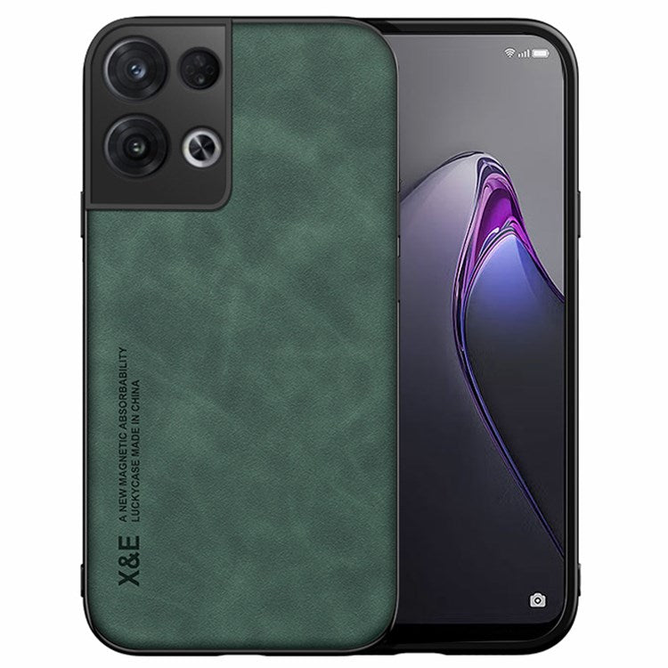 X&E Skin-touch Phone Case for Oppo Reno8 5G (Global Version) / Reno8 5G, Precise Cutout PU Leather Coated TPU Cover with Car Mount Metal Sheet - Green