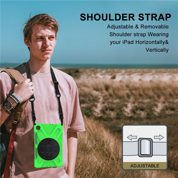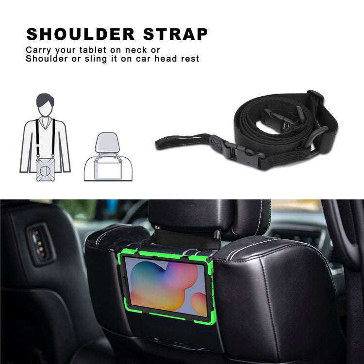 [X-Shape] PC + TPU Kickstand Case and Shoulder Strap for Samsung Galaxy Tab S6 Lite (2020) P610 P615 / (2022) / (2024) P620 - Green