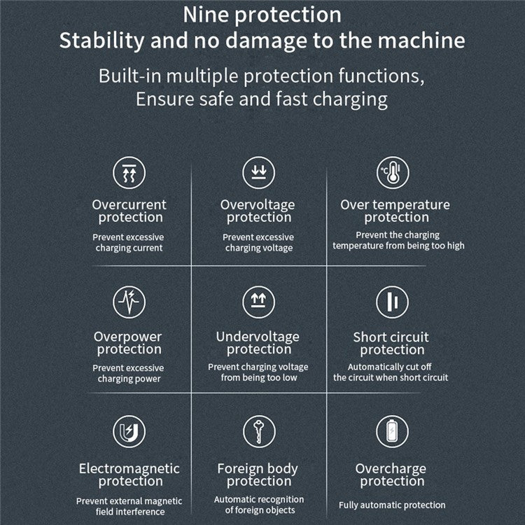 Built-in multiple protection functions, stability and no damage to the machine, ensure safe and fast charging