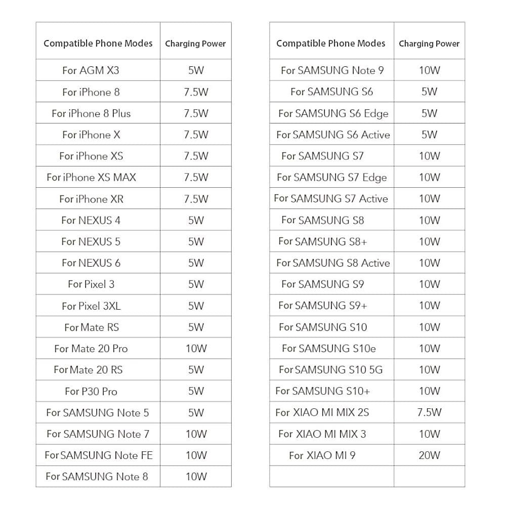 Xiaomi ZMI Wireless Car Charger with Phone Holder 20W Fast Charging For Mobile Phone For Huawei iPhone iPad 6.7inch DevicesPlease note it this item comes from Xiaomi Ecochain Cooperation specialized in best products with the best quality so there is no Xiaomi logo on it thanks.Much More Hottest Ecochain Products on Xiaomi Youpin.Features:- 20W MAX wireless output Qi standard cable-free fast charging.- Simple installation- Zinc alloy clamp arm- Wide compatibility for multiple mobile phone- 360 degree rotating for free adjustment- With charging indicator and Micro-USB portCompatible With Many of Phones (phone models --- charging power)For AGM X3 --- 5WFor iPhone 8/ 8 plus/ X/XS/XS MAX/ XR --- 7.5WFor NEXUS 4/5/6 --- 5WFor Pixel 3/3XL --- 5WFor Mate RS / 20 RS / P30 Pro--- 5WFor Mate 20 Pro --- 10WFor SAMSUNG Note 5 --- 5WFor SAMSUNG Note 7/FE/8/9 --- 10WFor SAMSUNG S6/ S6 Edge/ S6 Active --- 5WFor SAMSUNG S7/ S7 edge/S7 Active --- 10WFor SAMSUNG S8/S8 PLUS / S8 Active --- 10WFor SAMSUNG S9/ S9 PLUS/ S10/ S10e/ S10 5G/ S10 PLUS --- 10WFor XIAOMI MI MIX 2S --- 7.5WFor XIAOMI MI MIX 3 --- 10WFor XIAOMI MI 9 --- 20WSpecifications:Brand: ZMI(Xiaomi ecological chain)Product Name: ZMI Car Wireless ChargerProduct model: WCJ10Colour: BlackMaterial: PC + ABSInterface type: Micro USBInput: 5V/2A 9V/1.6A 12V-16V/1.7A MaxOutput: 20W MaxReceiving Distance: 4mmItem Size: Approx.12.2*9.16*8.72cmPackage Weight: Approx. 550gPackage Size: Approx. 16*14*12cmNote:Item color may show slight aberration due to different shooting light and monitor display.Package Included:1 * ZMI Car Wireless Charger1 * Fixed Clip1 * Base1 * Car Charger1 * Chinese Manual
