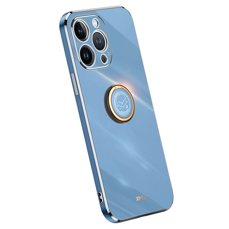 XINLI For iPhone 16 Pro Case Ring Kickstand Electroplating TPU Phone Cover - Blue