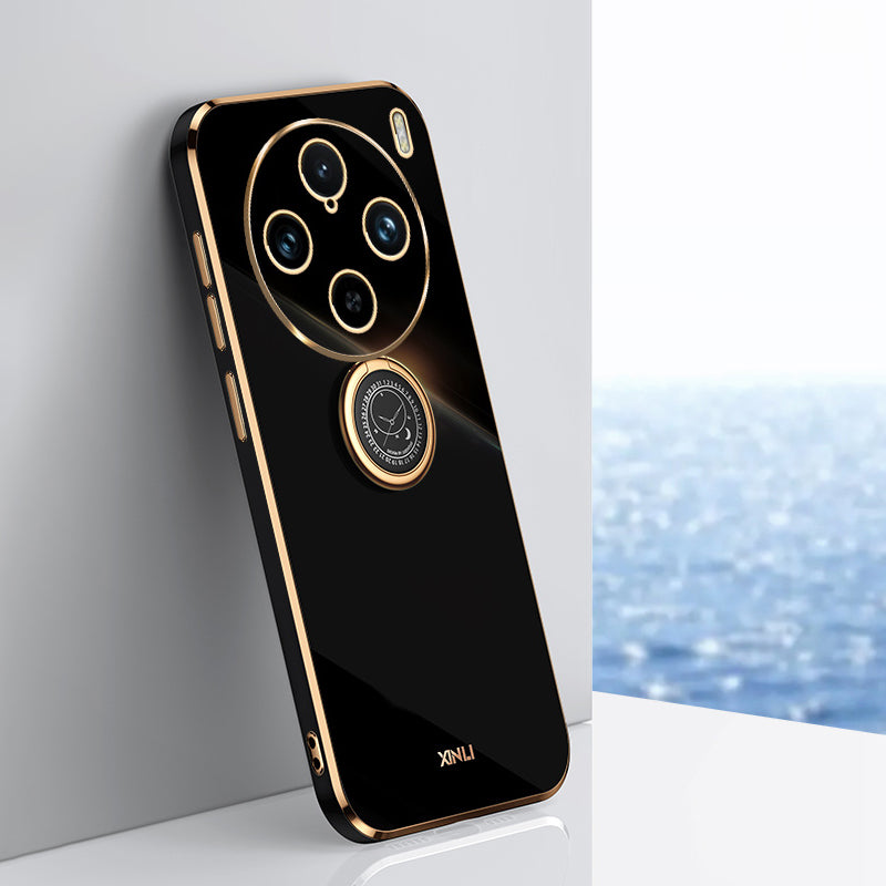 XINLI For vivo X100 Pro 5G Electroplating Phone Case Ring Holder Shockproof Protection Cover - Black