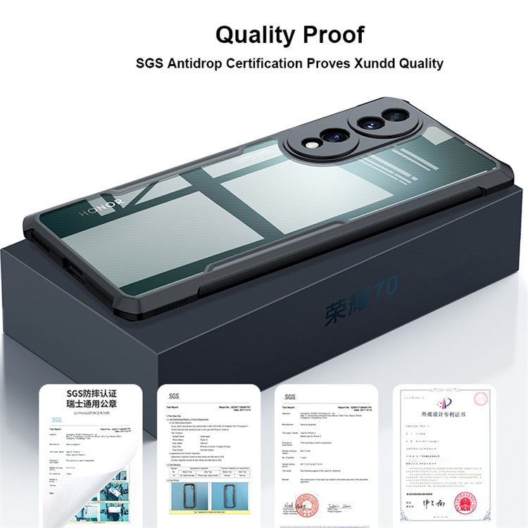 XUNDD For Honor 70 Pro 5G / 70 Pro+ 5G Acrylic + TPU Phone Case Shock-absorbing Protective Mobile Phone Back Cover - Black