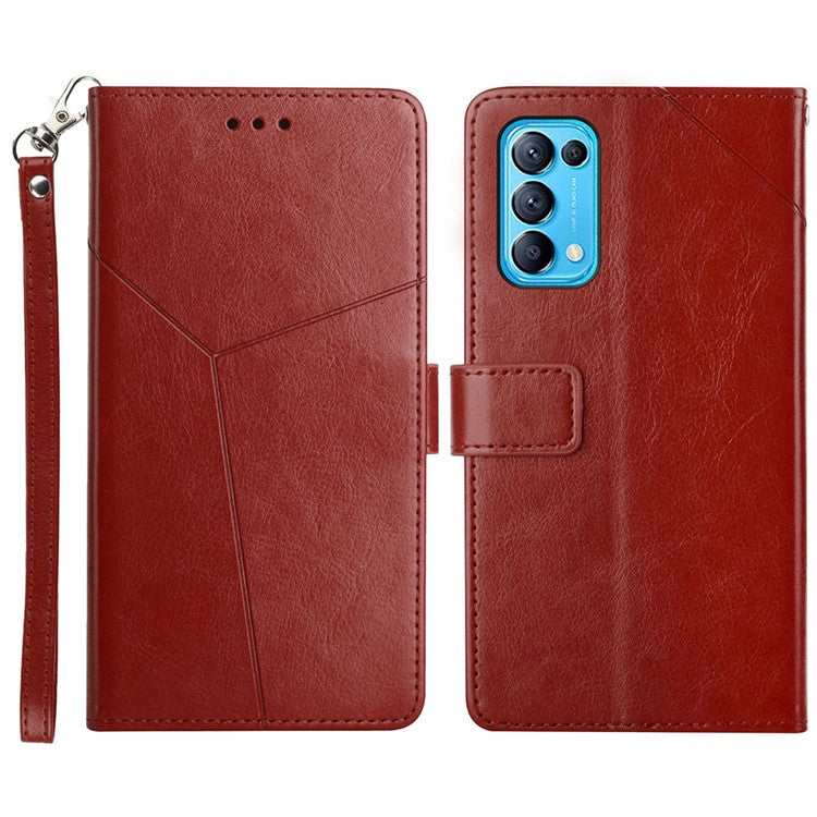 Y-Shaped Line Imprinting Full Body Protection Magnetic Clasp Wallet Stand PU Leather Phone Cover for Oppo Reno5 4G/5G/Reno5 K/Find X3 Lite - Brown