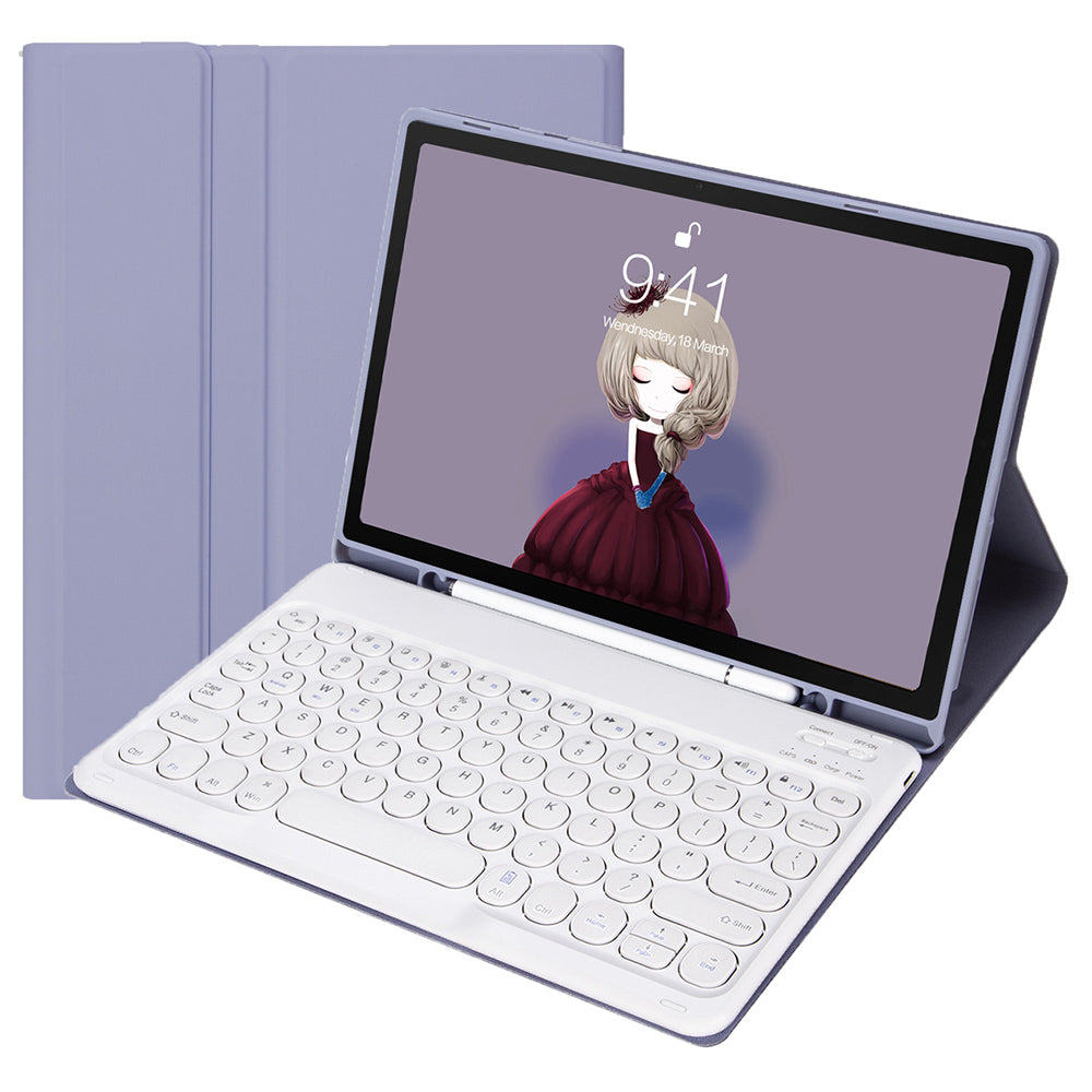 YA710B For Samsung Galaxy Tab S9 FE X510 / X516 Round Key Cap Bluetooth Keyboard TPU Tablet Case - Purple