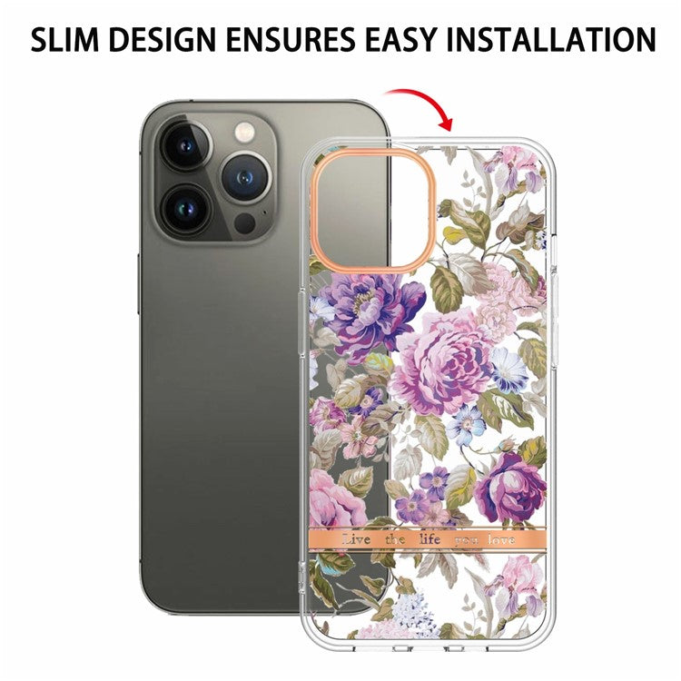 YB IMD-8 Series for iPhone 16 Pro TPU Case Flower Pattern IMD IML Phone Cover - HC006 Purple Peony