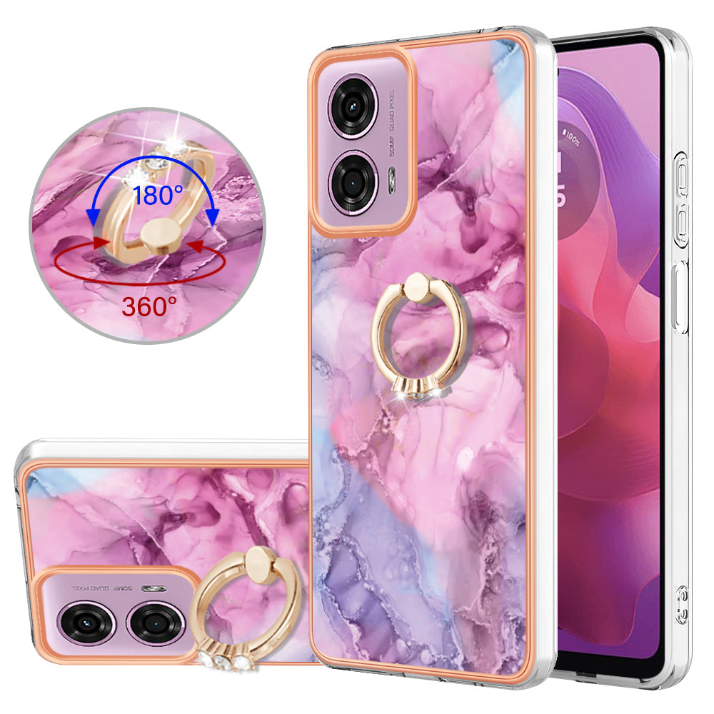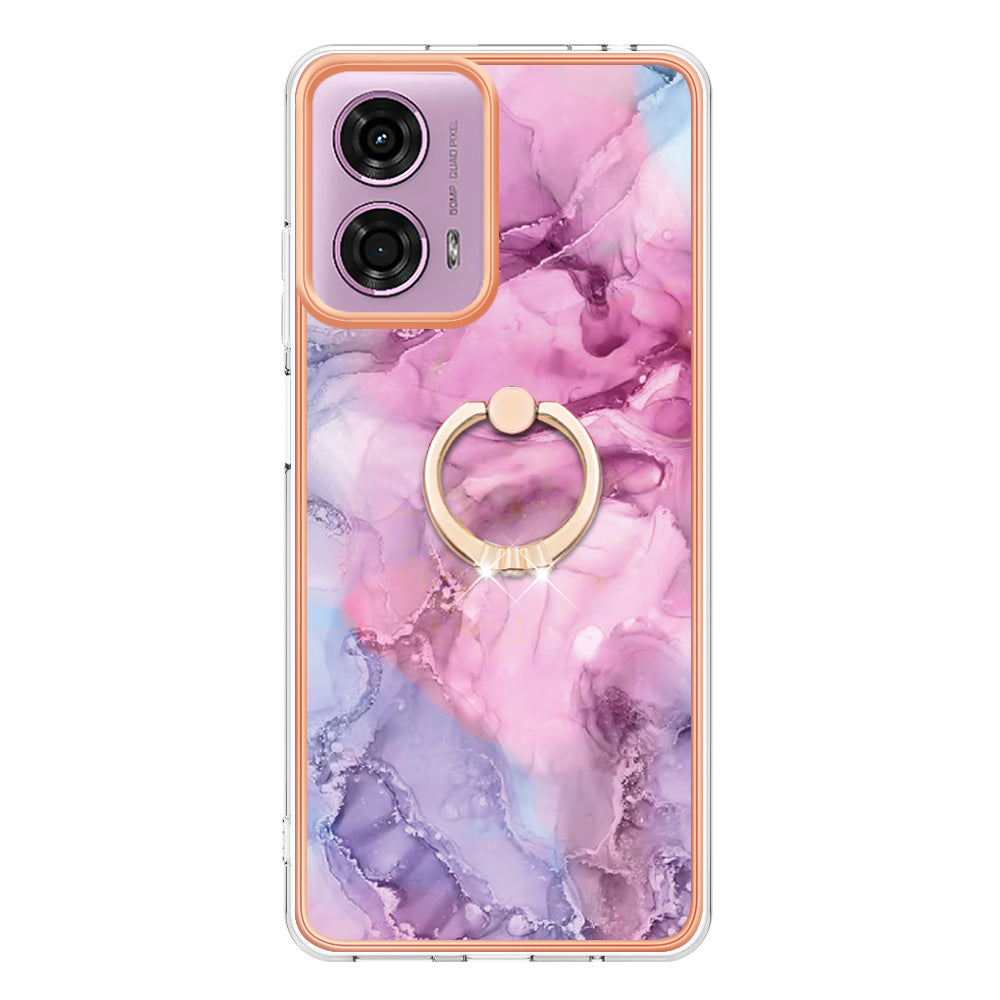 YB IMD Series-17 Style-E For Motorola Moto G04 4G / G24 4G TPU Phone Cover Ring Kickstand Electroplated Case - Rose