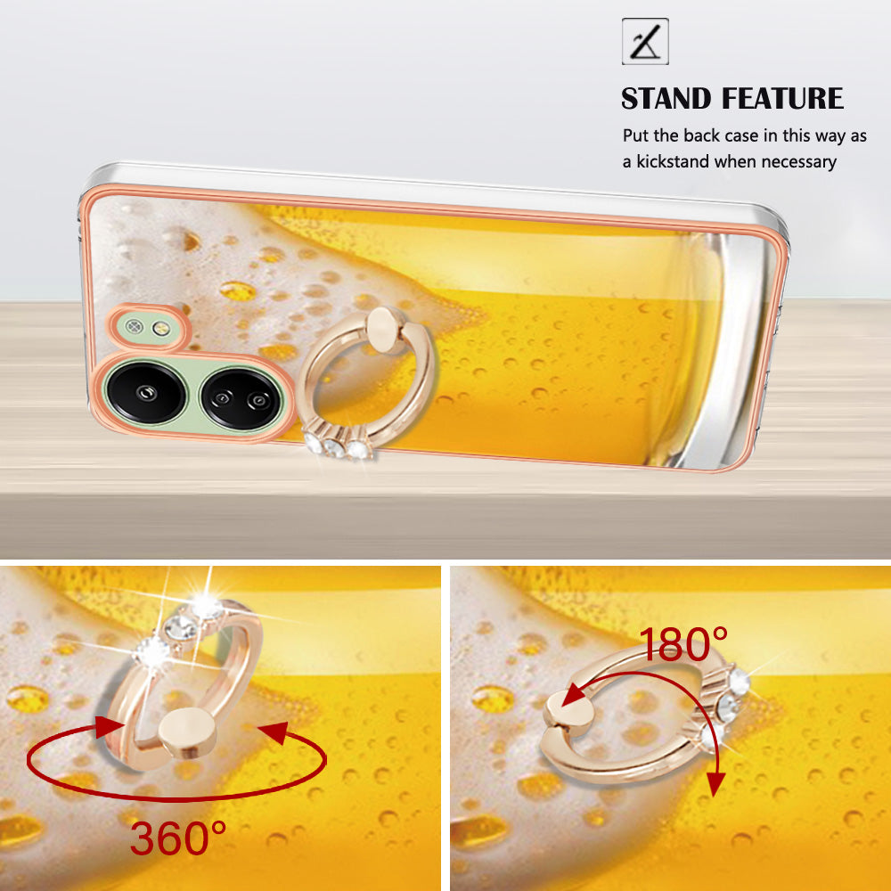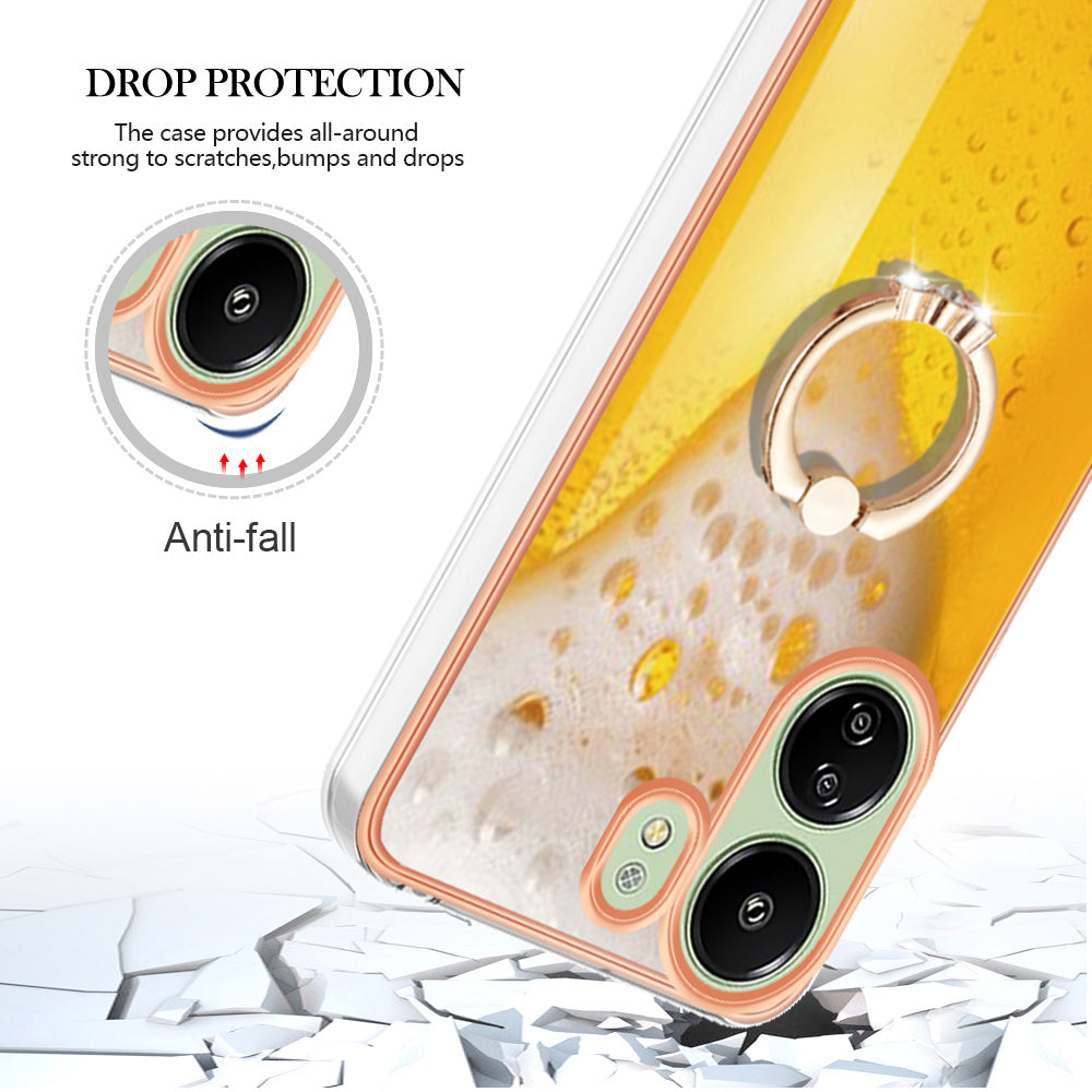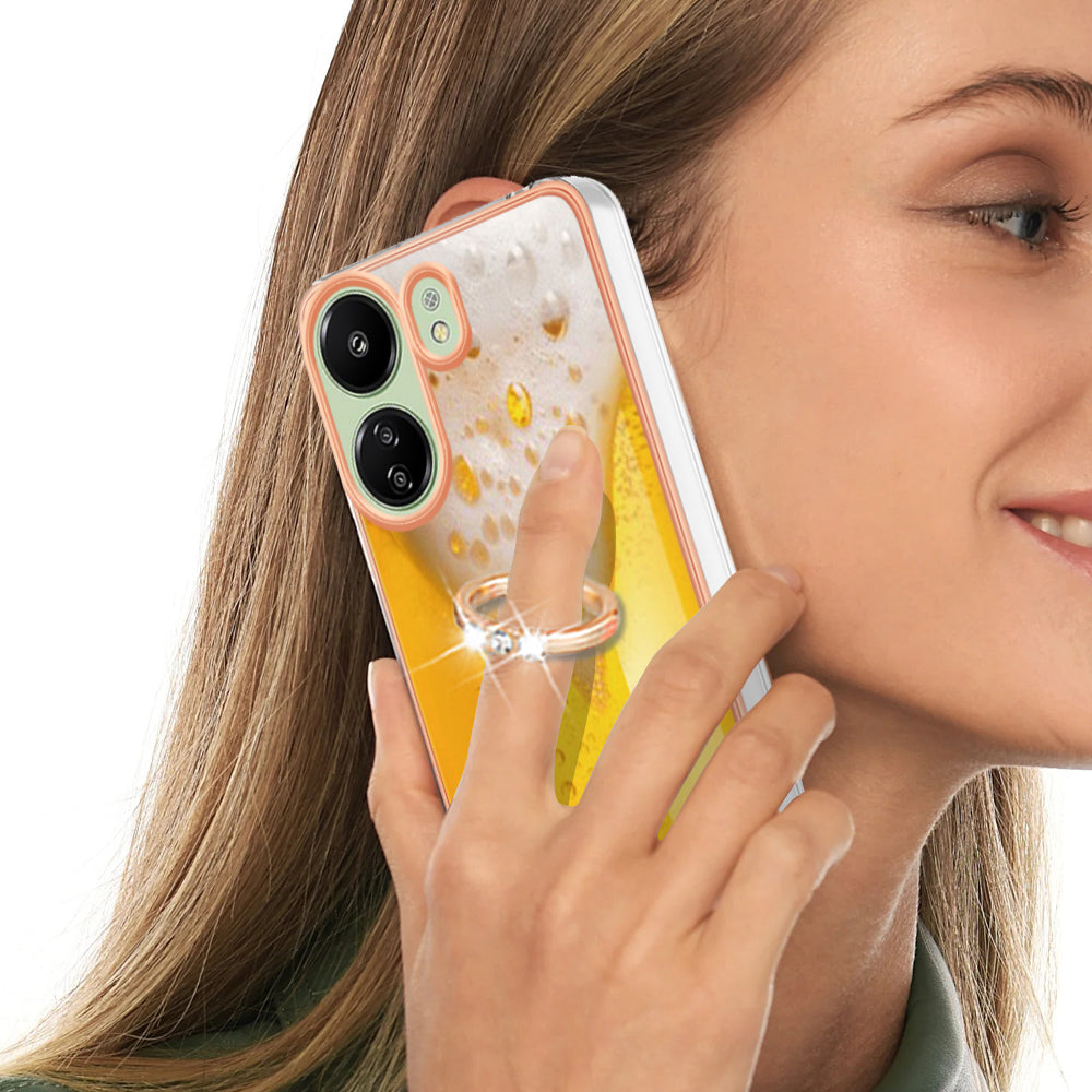 YB IMD Series-20 Style D for Xiaomi Redmi 13C 4G / Poco C65 4G TPU Back Case Ring Kickstand 2.0mm Cover - Beer