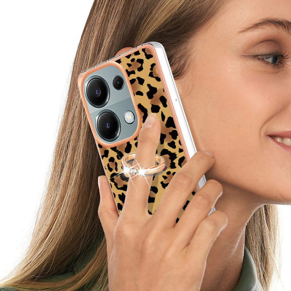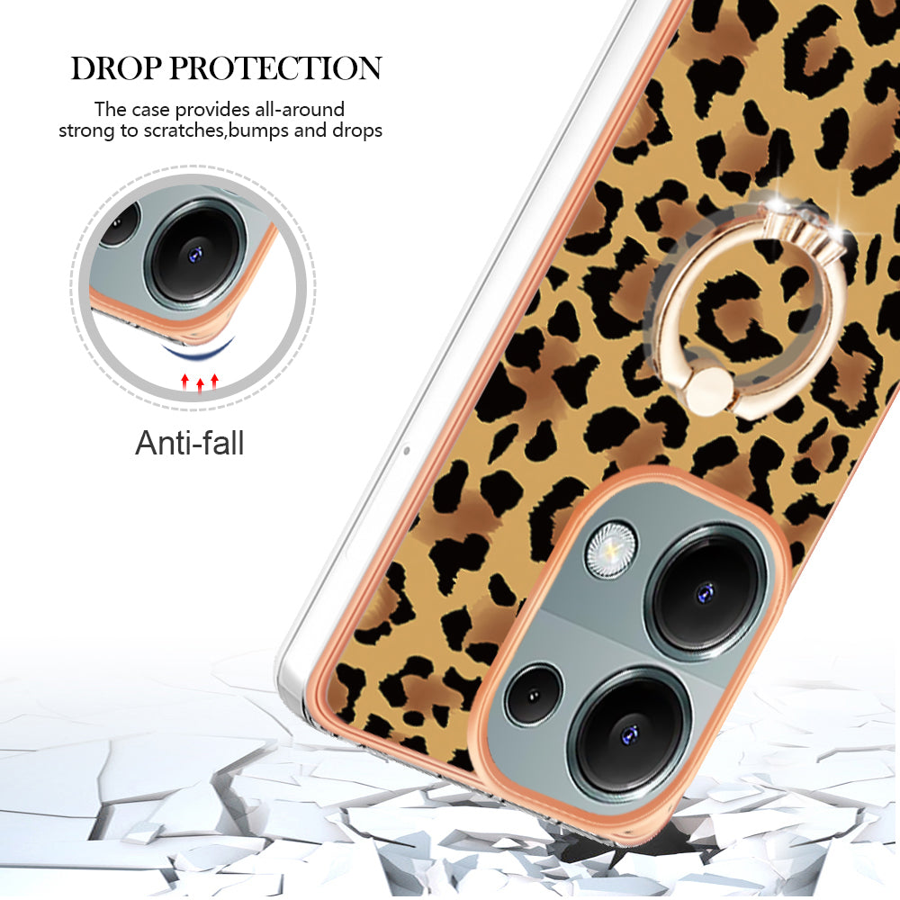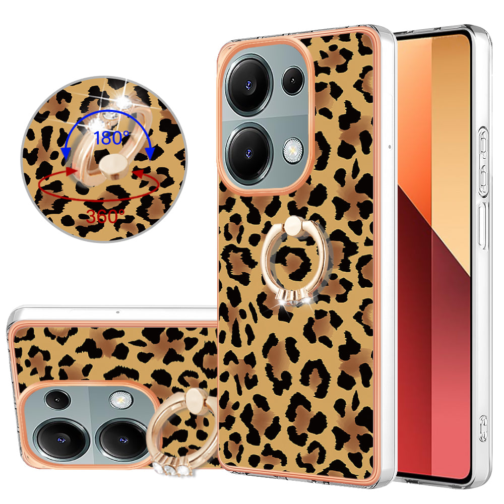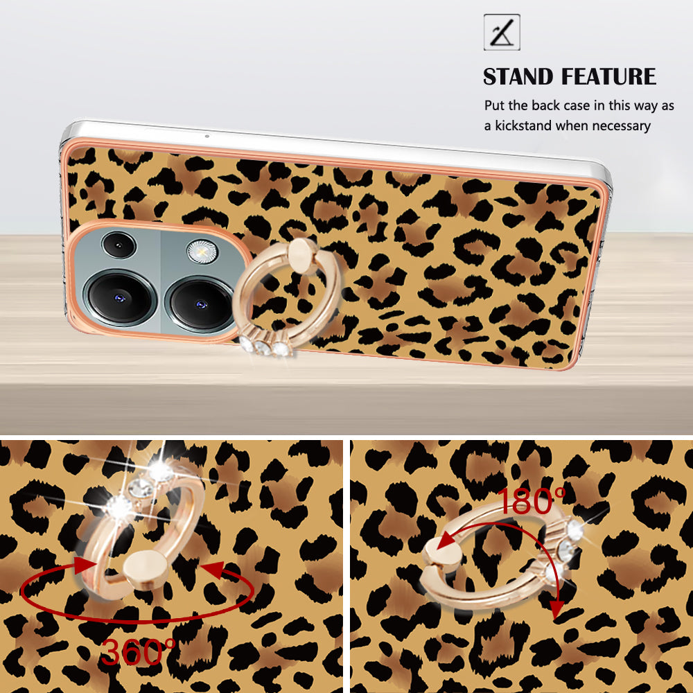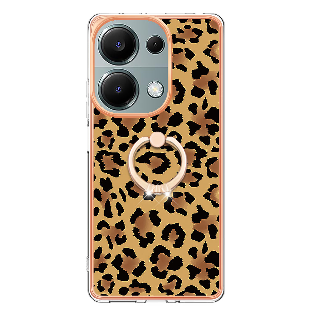YB IMD Series-20 Style D for Xiaomi Redmi Note 13 Pro 4G / Poco M6 Pro 4G TPU Case Ring Kickstand 2.0mm Back Cover - Leopard Print