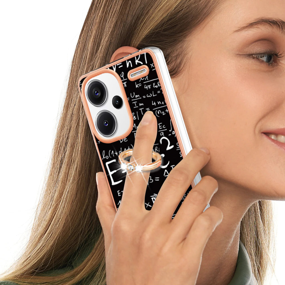 YB IMD Series-20 Style D for Xiaomi Redmi Note 13 Pro+ 5G Case with Ring Holder 2.0mm TPU Gold Edge Phone Cover - Equation